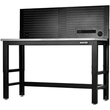 Bunker Stainless Steel Worktop Workbench and Power Pegboard