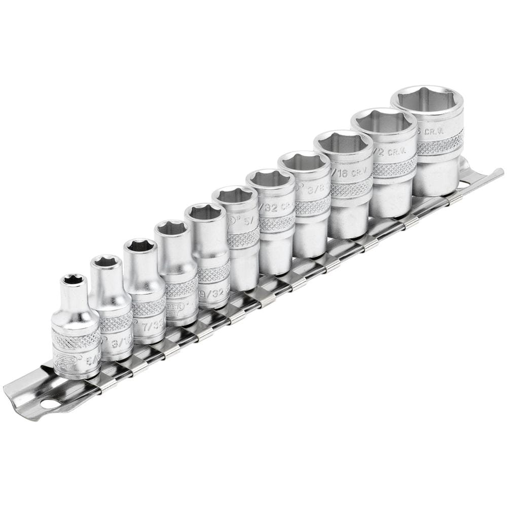 Draper 11 Piece 1/4" Drive Hex Socket Set Imperial on Rail