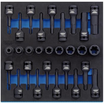 Draper 28 Piece 1/2" Drive Impact Torx Hex Socket Set In Eva Insert Tray