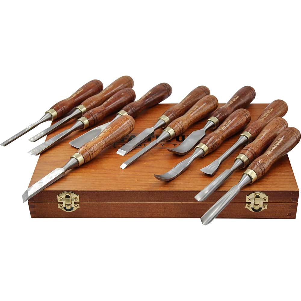 Faithfull 12 Piece Wood Carving Chisel Set in Case
