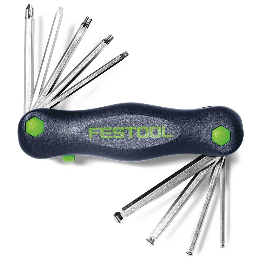 Festool Fan Toolie 9 Piece Folding Hex, Slotted, Pozi and Torx Key Set