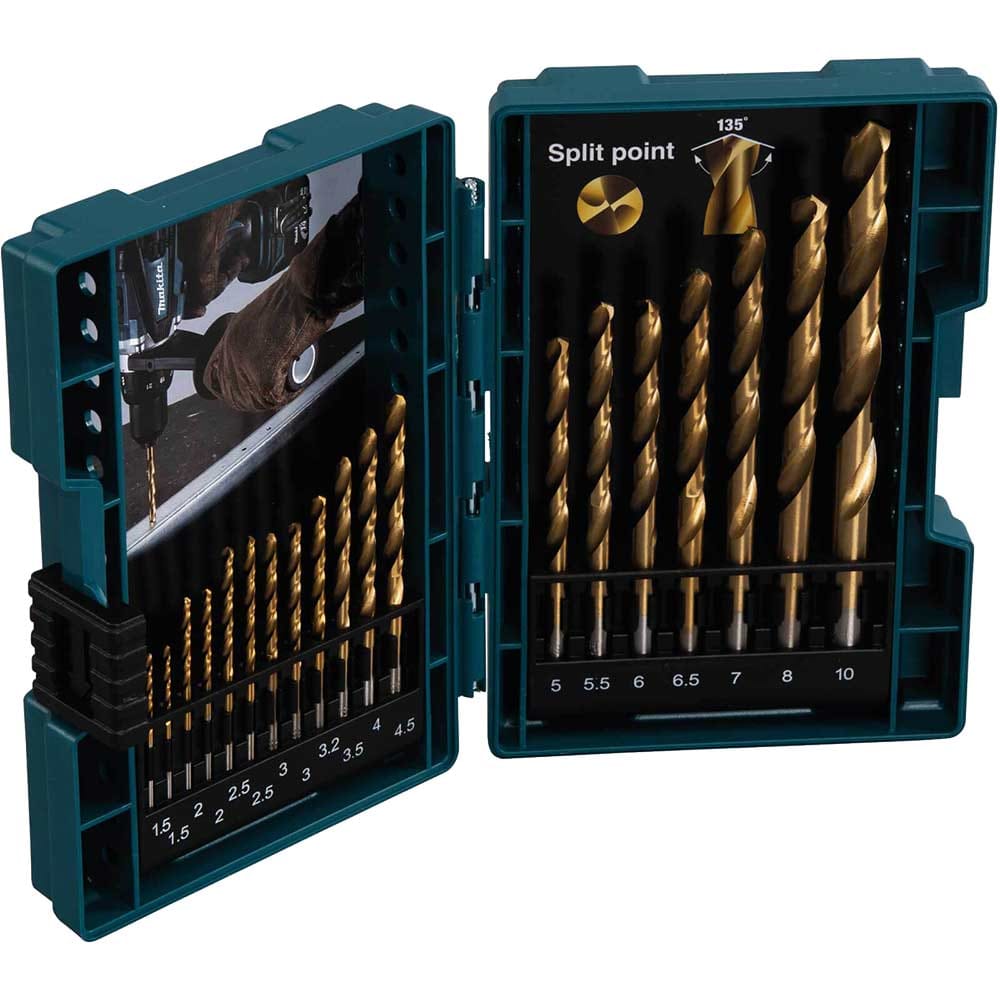 Get help regarding Makita 19 Piece HSS-TiN Metal Drill Bit Set