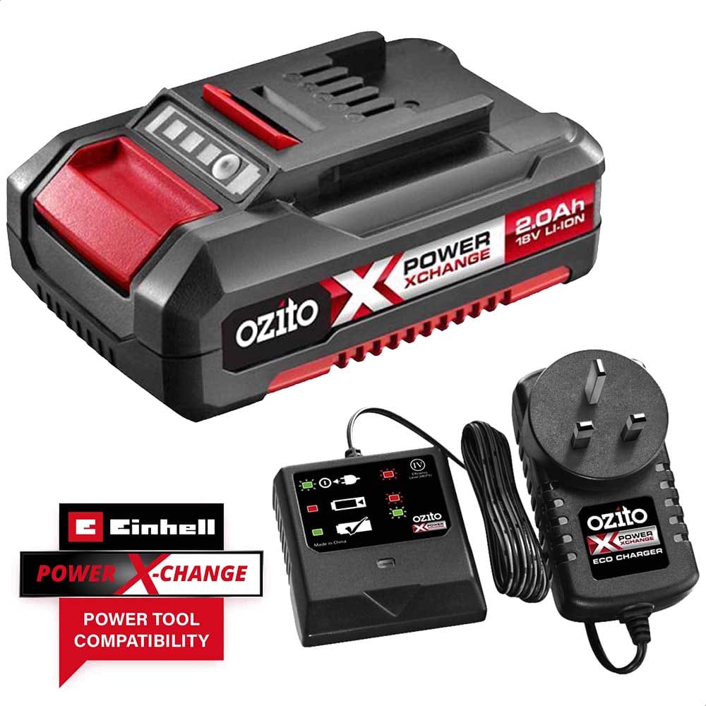 The Power X Change System is a range of 18v batteries that fit all Einhell & Ozito Power & Garden Tools, allowing you to buy just a few batteries but as many of the range of bare tools that you need without the expense of a new batteries and chargers each time.