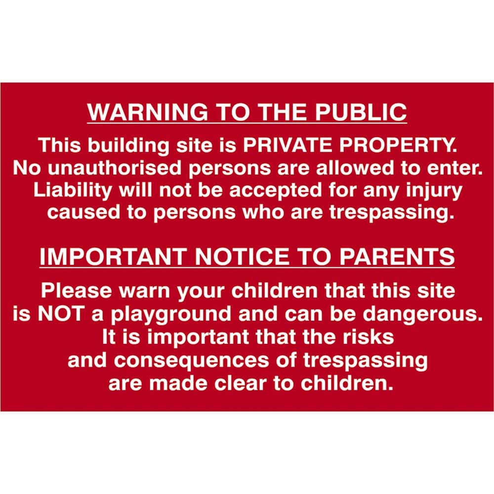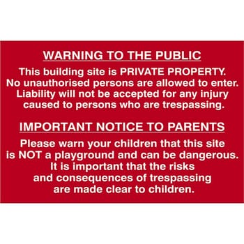 Scan Building Site Warning To Public and Parents Sign