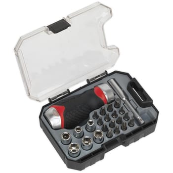 Sealey 24 Piece Stubby Ratchet Screwdriver Bit and Socket Set