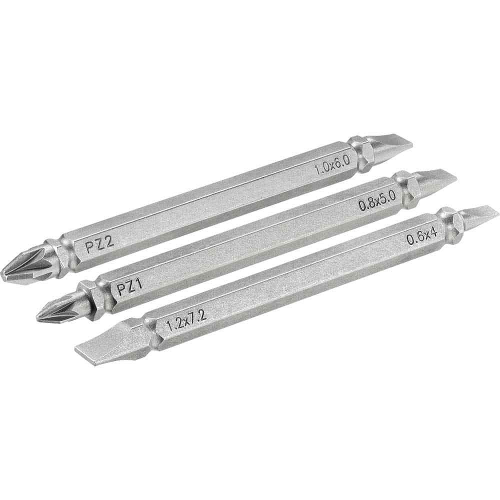 Get help regarding Stanley 3 Piece Pozi and Slotted Double Ended Screwdriver Bit Set