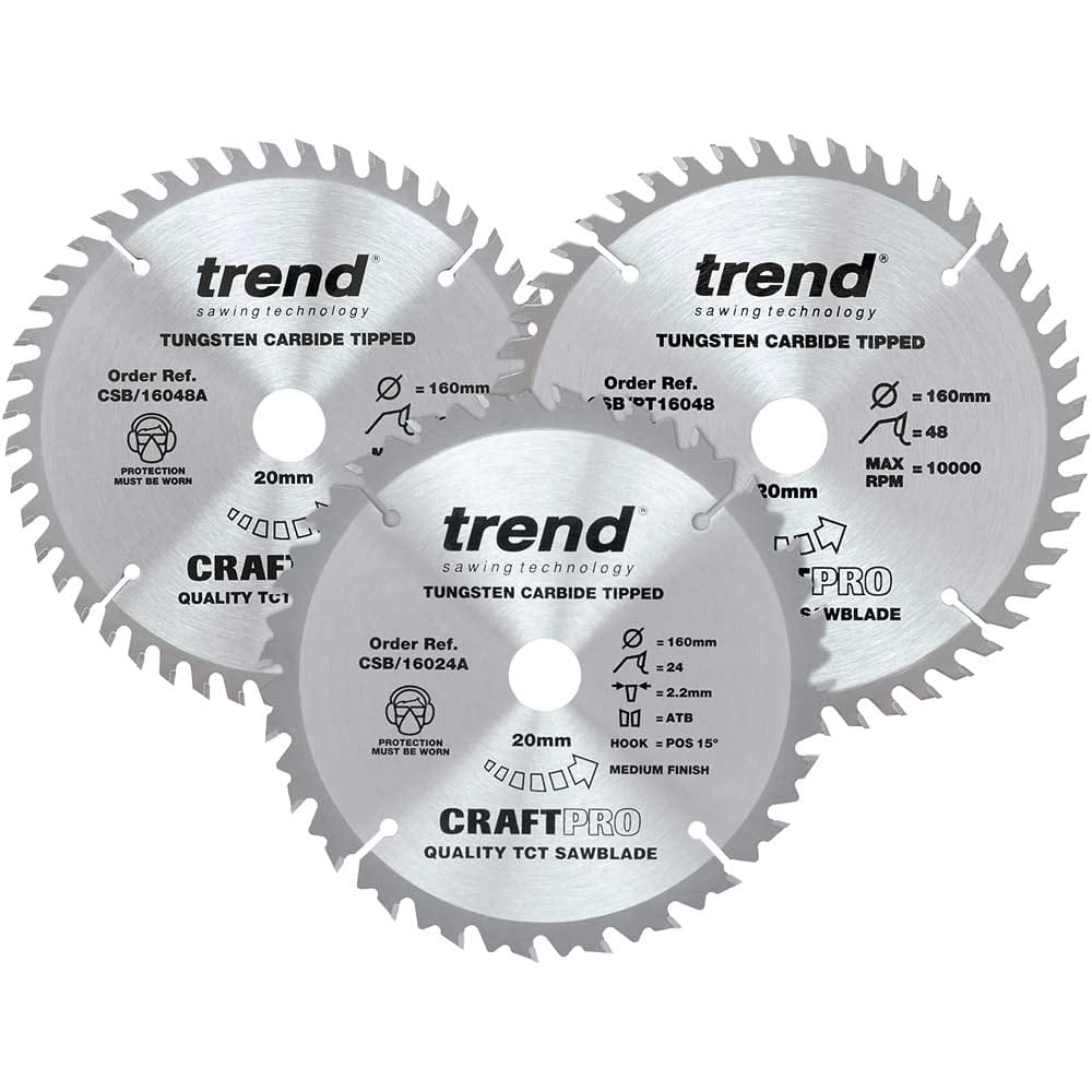 Trend CRAFTPRO 3 Piece 160mm Circular Saw Blade Set