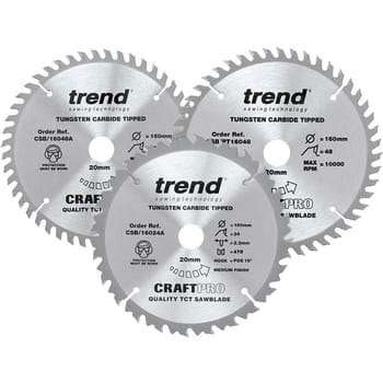 Get help regarding Trend CRAFTPRO 3 Piece 160mm Circular Saw Blade Set