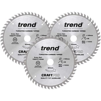 Get help regarding Trend CRAFTPRO 3 Piece 165mm Panel Trim Circular Saw Blade Set